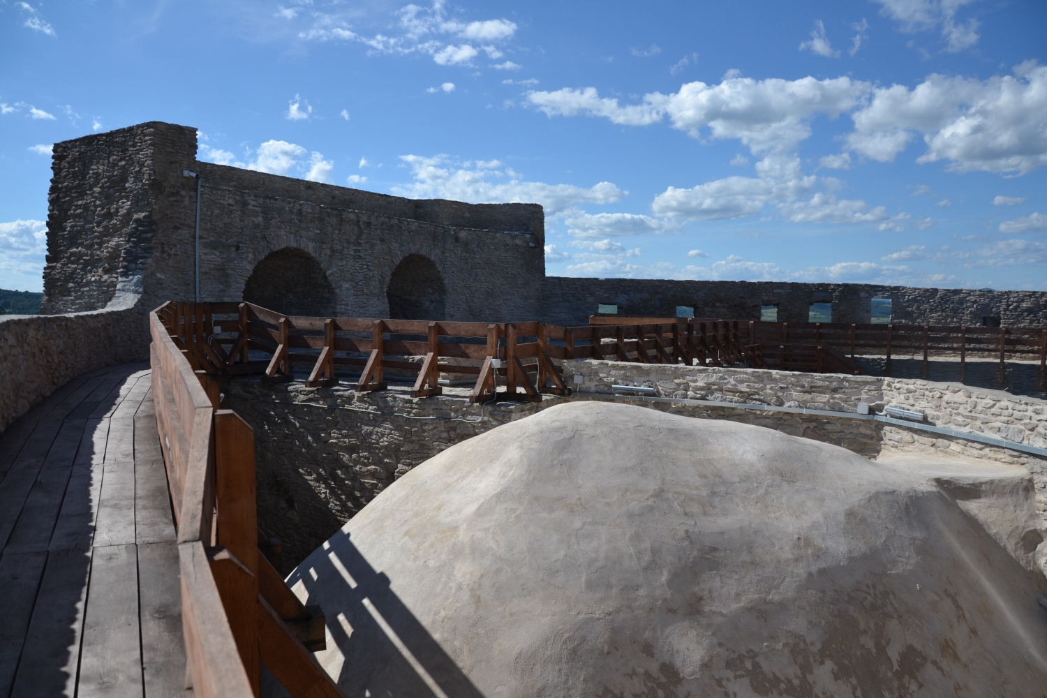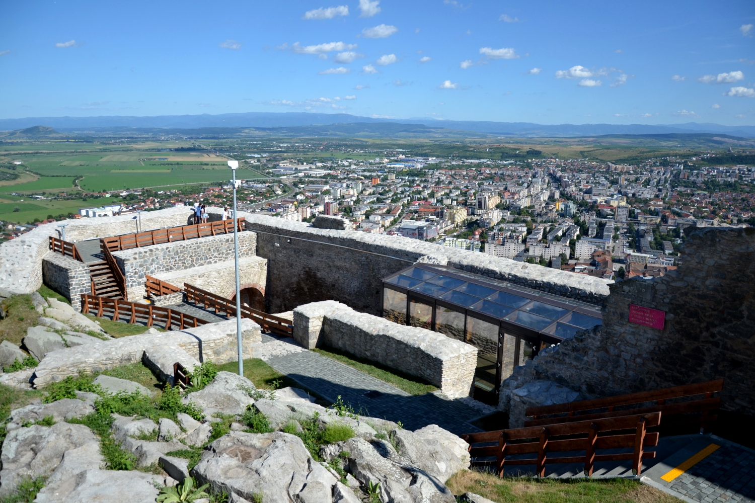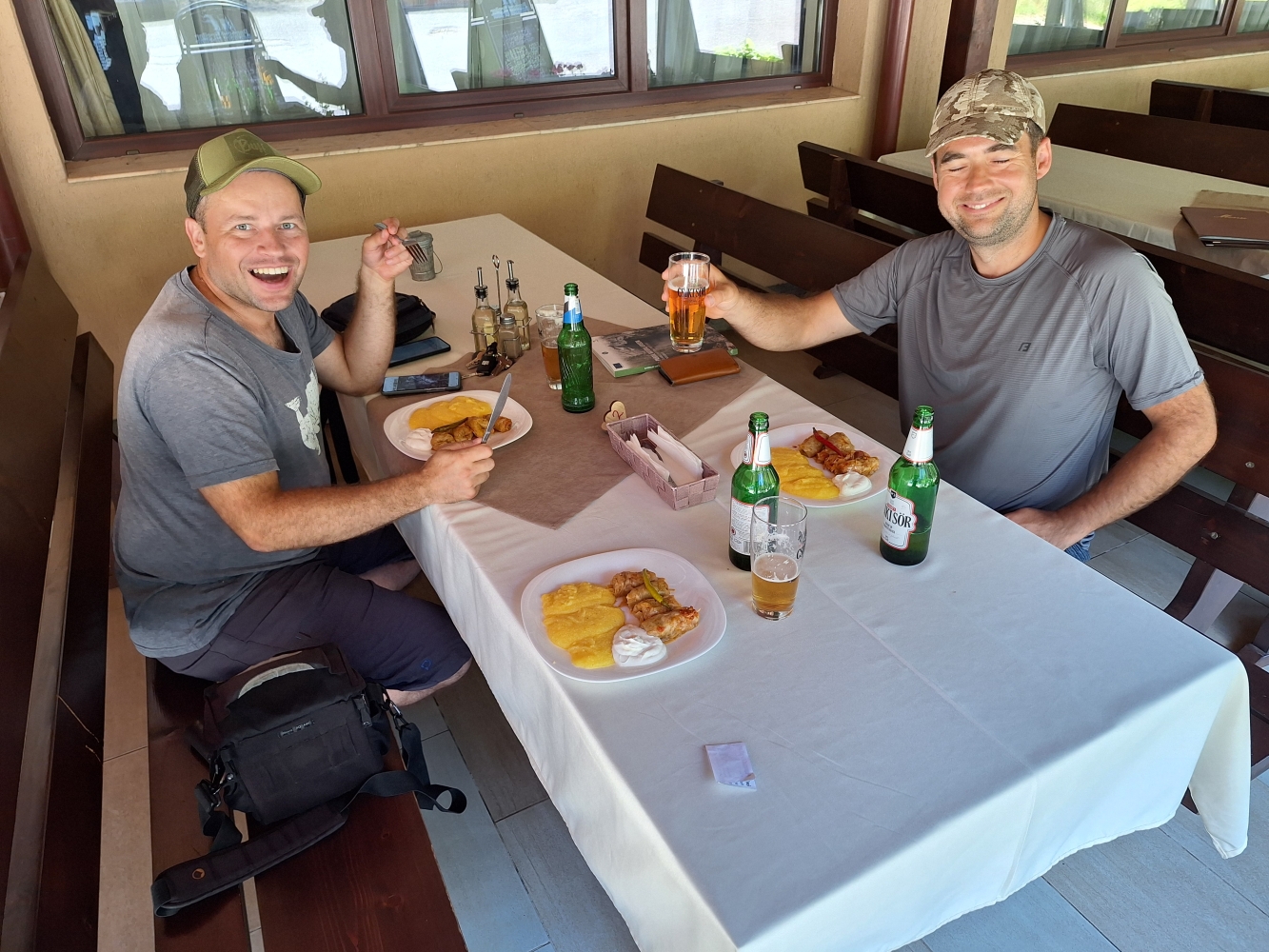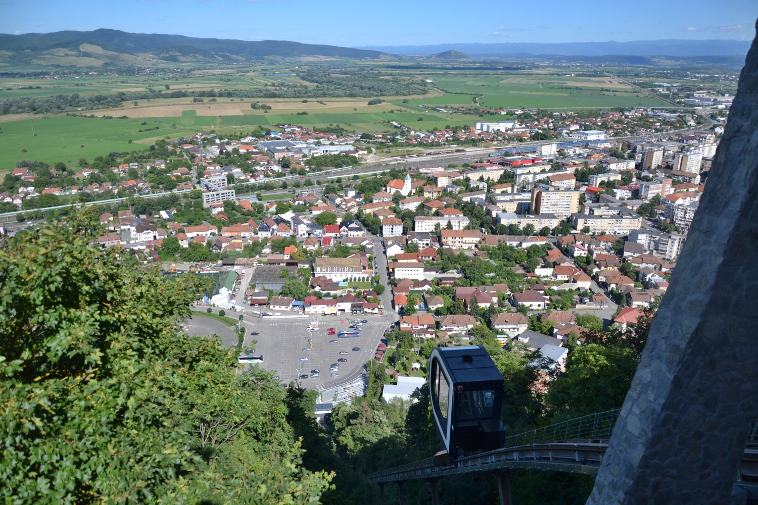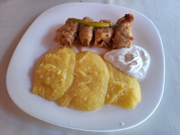 V reštaurácii v informačnom centre bolo v ponuke tradičné rumunské menu. Voľba padla ako inak na kapustové závitky plnené mletým mäsom zvané sarmale. Ako príloha nesmela chýbať kukuričná kaša, ktorej sa tu hovorí mamaliga. Práve mamaliga nás bude gastronomicky sprevádzať po celý čas cesty, ale o tom neskôr. Po obede sa presúvame južne smerom na Devu, kde sa nachádza rovnomenná pevnosť z 12. storočia. Pevnosť sa nachádza na vrchole vyhasnutého vulkánu a ponúka nádherný výhľad na mesto a Karpaty v pozadí. Práve pohľad na okolité Karpaty sa pre našinca núti trochu zamyslieť nad veľkosťou a rôznorodosťou týchto hôr, ktoré na nás budú čakať aj v domovine. Po pár koliečkach po hradbách a nádherných záberoch na okolie, nastupujeme do pozemnej lanovky a vraciame sa na parkovisko, aby sme pokračovali smerom na Kluž.