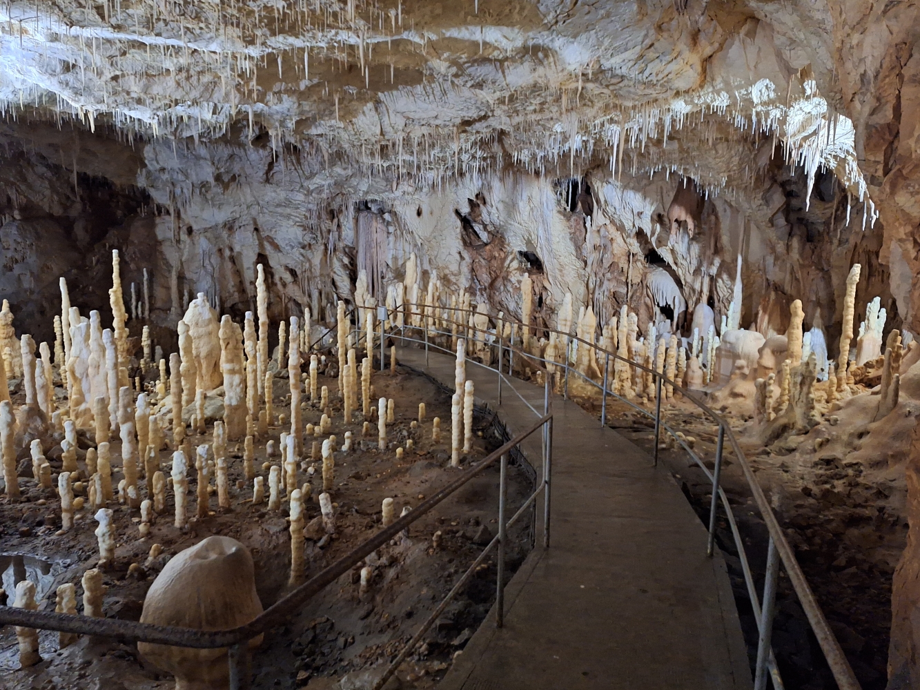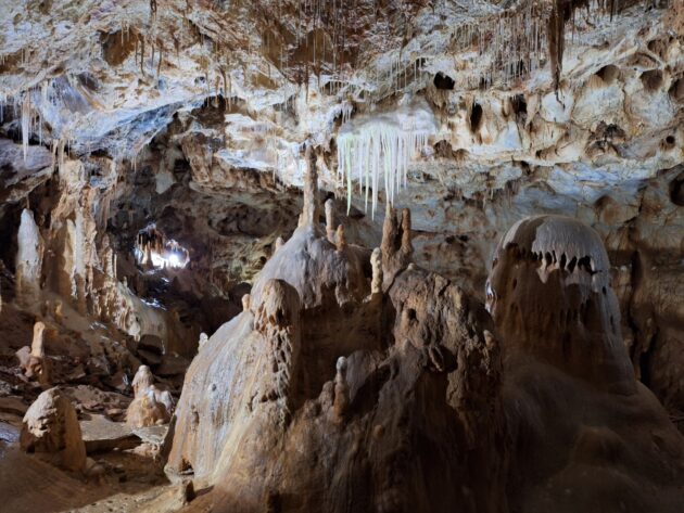 Okrem pozostatkov medveďa tu turisti môžu obdivovať bohatú kvapľovú výzdobu. Obzvlášť zaujímavé sú štíhle kvaple, či už stalaktity rastúce zvrchu, či stalagmity zospodu. Mňa najviac zaujali početné brčká, tenké štíhle stalaktity, ktoré pri svojej hustote v kombinácii s osvetlením jaskyne, vytvárali ilúziu kamenného dažďa. Po asi hodinovej prehliadke spojenej s intenzívnym fotografovaním, lebo výzdoba bola neskutočne bohatá, sme sa vybrali na pravý rumunský obed. Chôdzu turistickým chodníkom som si spestril nákupom minerálov v jednom z mnohých stánkov. V ponuke boli krásne rudné minerály ako galenit, či sfalerit, ale aj iné z oblasti Marmaroš.