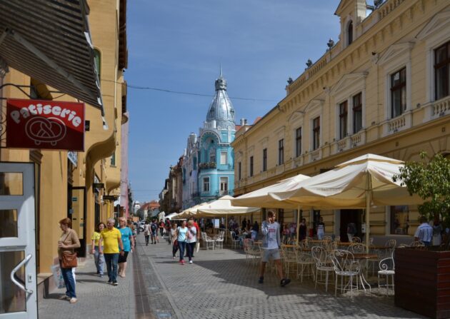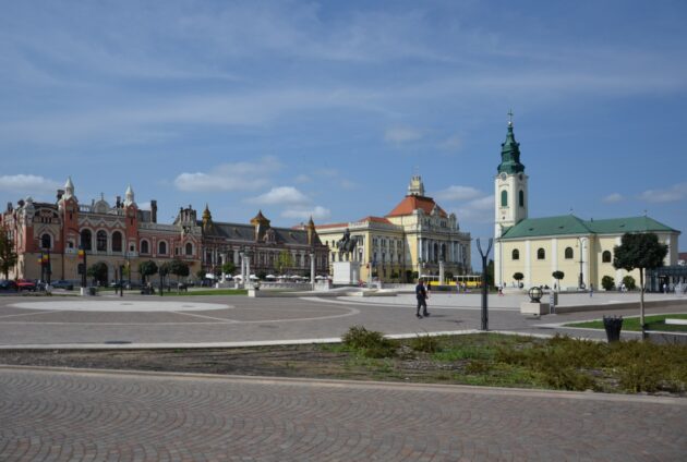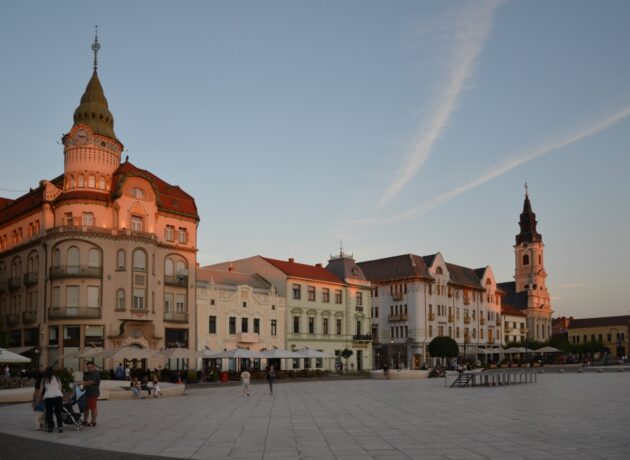 Ešte pred ubytovaním sme sa vybrali na návštevu historického centra. Táto návšteva však nebola mojou prvou v tomto meste. Tá sa uskutočnila pred šiestimi rokmi vrámci predĺženého víkendu, kedy sme spoznávali región Krišaňa (ktorého centrom je práve Oradea) a východnejšieho Sedmohradska. V tomto cestopise použijem aj niektoré zážitky z prvej návštevy pre spestrenie a doplnenie. Nový Varadín, ako sa v slovenčine Oradea nazýva je dvestotisícové mesto a centrum Bihárskej župy a spomínaného historického regiónu Krišaňa nachádzajúceho sa pozdĺž rieky Kriš medzi Maďarskom a Sedmohradskom. Jeho poloha a blízkosť maďarskej hranice ho robí jedno z ekonomicky najbohatších miest Rumunska. Jeho história, ako aj celého regiónu, je podobná tej slovenskej, respektíve južnoslovenskej. Mesto bolo pod nadvládou Uhorska, neskôr Osmanskej ríše, Rakúsko-Uhorska, novovzniknutého Rumunska, horthyovského Maďarska a nakoniec opäť Rumunska, ktorého súčasťou je dodnes. Hlavne habsburská nadvláda mala najväčší vplyv na architektúru mesta. V pomerne rozľahlom historickom centre vynikajú barokové a secesné budovy, hlavne paláce. Najväčšia koncentrácia týchto skvostov sa nachádza na Piata Unirii, čo je veľké námestie, ktoré tvorí centrum mesta. Kúsok ďalej sa nachádza stará vojenská pevnosť, kde som mal možnosť navštíviť dni slovenskej kultúry, nakoľko v tejto oblasti žije aj početnejšia skupina rumunských Slovákov. Okrem milovníkov historickej architektúry, si prídu na svoje aj milovníci kultúrnych podujatí, ktoré sa počas leta na tunajšom námestí konajú v hojnom počte. Mňa ako nadšenca koľajových vozidiel zaujala električková sieť, kde možno vidieť električky podobné tým vo Viedni. Pre fajnšmekrov je tu kúsok v podobe vystavenej elektrickej lokomotívy s lýrovým zberačom, ktorá ešte v nedávnej minulosti ťahala nákladné vagóny po miestnej električkovej sieti. Celkovo letná uvoľnená atmosféra v meste poskytuje veľa možností pre príjemný zážitok plný oddychu a spoločenského vyžitia.